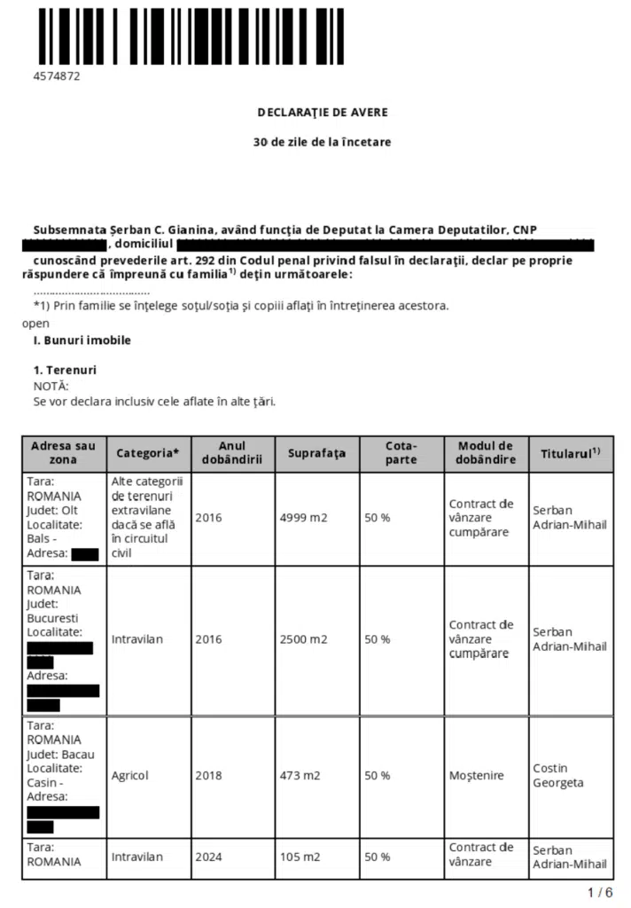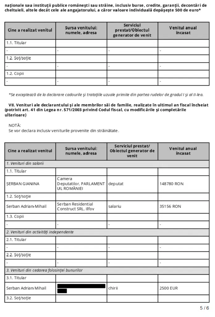 În timp ce pozează în apărătoarea cetățenilor de rând, declarația de avere a Gianinei Șerban trădează o cu totul altă realitate. Averea familiei a explodat pur și simplu de la an la an, în special după intrarea acesteia în Parlamentul României.