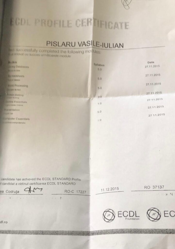 Pentru a bifa cerințele stricte ale postului, acesta a depus la dosar o diplomă de competențe IT și un atestat de limba engleză – ambele falsificate. Mai mult, pentru a demonstra anii de experiență necesari ocupării unei funcții de conducere, Pîslaru a pretins că a dobândit această expertiză în cadrul unui club de tenis. Problema? Respectivul club de tenis nu a existat niciodată în mod real, fiind doar o entitate „fantomă” folosită pentru a-i construi un CV artificial.