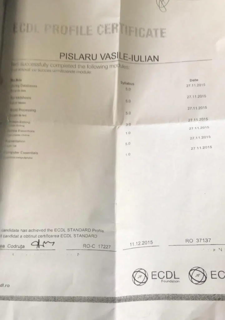 Pentru a bifa aceste cerințe, Pîslaru a depus la dosar o diplomă de competențe IT și un atestat de limbă străină – ambele falsificate. Mai mult, pentru a demonstra anii de experiență necesari ocupării unei funcții de conducere, acesta a inventat o experiență profesională la un club de tenis. Problema? Respectivul club nu a existat niciodată în mod real, fiind doar o entitate de fațadă folosită pentru a-i „umfla” CV-ul. Conștient de gravitatea faptelor sale, imediat după ce s-a văzut instalat în fotoliul de director adjunct, Pîslaru a demarat o operațiune de „curățenie”, încercând să distrugă dovezile și să șteargă urmele diplomelor false.